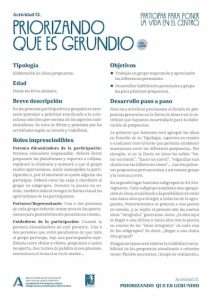 En los procesos participativos y grupales es necesario aprender a priorizar atendiendo a la autoestima colectiva por encima de los aspectos individualistas. Se trata de filtrar y priorizar por las actividades según su interés y viabilidad.