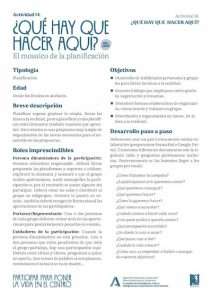 Planificar supone graduar la utopía, llevar las ideas a la realidad, pero a planificar y más planificar colectivamente también tenemos que aprender. Esta técnica es una propuesta muy simple de organización de las tareas necesarias para el desarrollo de las propuestas.