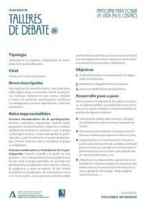 Para la puesta en marcha de los talleres de debate, es imprescindible una definición clara del tema que se quiere trabajar. Con posterioridad seguimos los siguientes pasos: